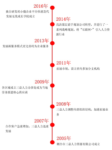 2008年8月,鄄城縣三益人力資源開發(fā)有限公司正式成立,鄄城公司的成立為公司今后的發(fā)展發(fā)揮重要作用。煙臺(tái)三益人力資源有限公司總部于2009年07月06日在煙臺(tái)工商局注冊(cè)成立。在公司發(fā)展壯大的10年里,我們始終為客戶提供好的產(chǎn)品和技術(shù)支持、健全的售后服務(wù)。公司先后在三十里堡、科信大廈、業(yè)達(dá)智慧谷、天宇市場(chǎng)開設(shè)了店鋪。2017年3月,三益威海分公司成立,大大拓寬了我們的國(guó)內(nèi)市場(chǎng)。